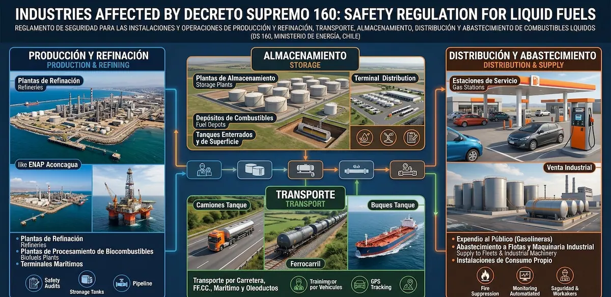 By enforcing these measures, Decreto Supremo 160 helps create a safer working environment across all fuel-handling industries in Chile.