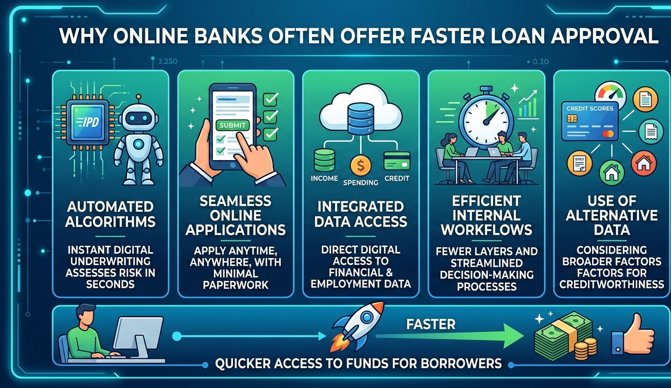 Loan approval speed is another major difference when evaluating Digital banks vs traditional banks for loans.