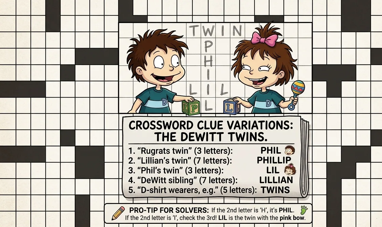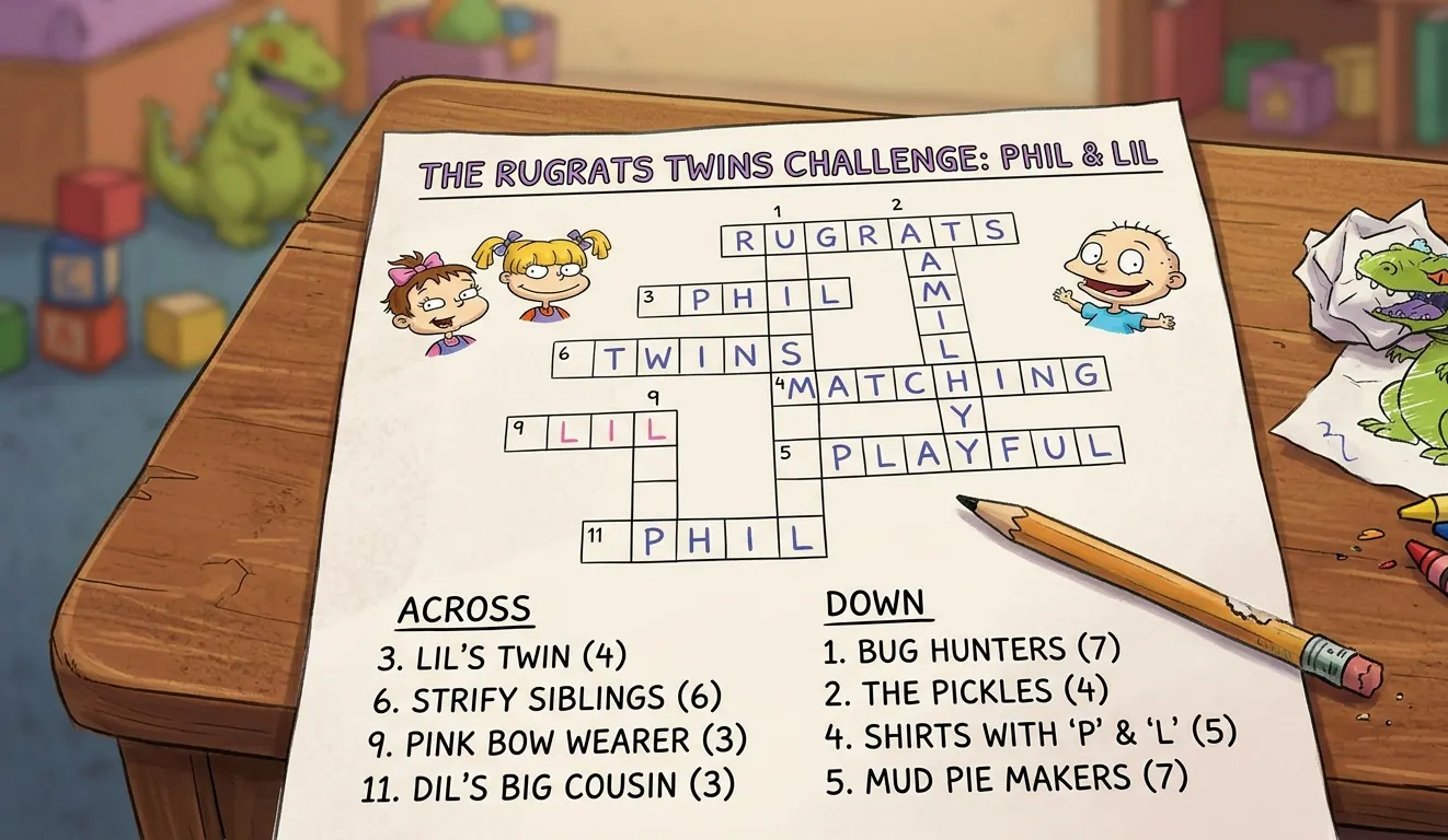 The clue Phil or Lil of Rugrats Crossword is simple once you understand the logic behind it. Rather than asking for the characters’ names, it focuses on their relationship. Phil and Lil are twins, and that is the most common and correct answer in crossword puzzles.