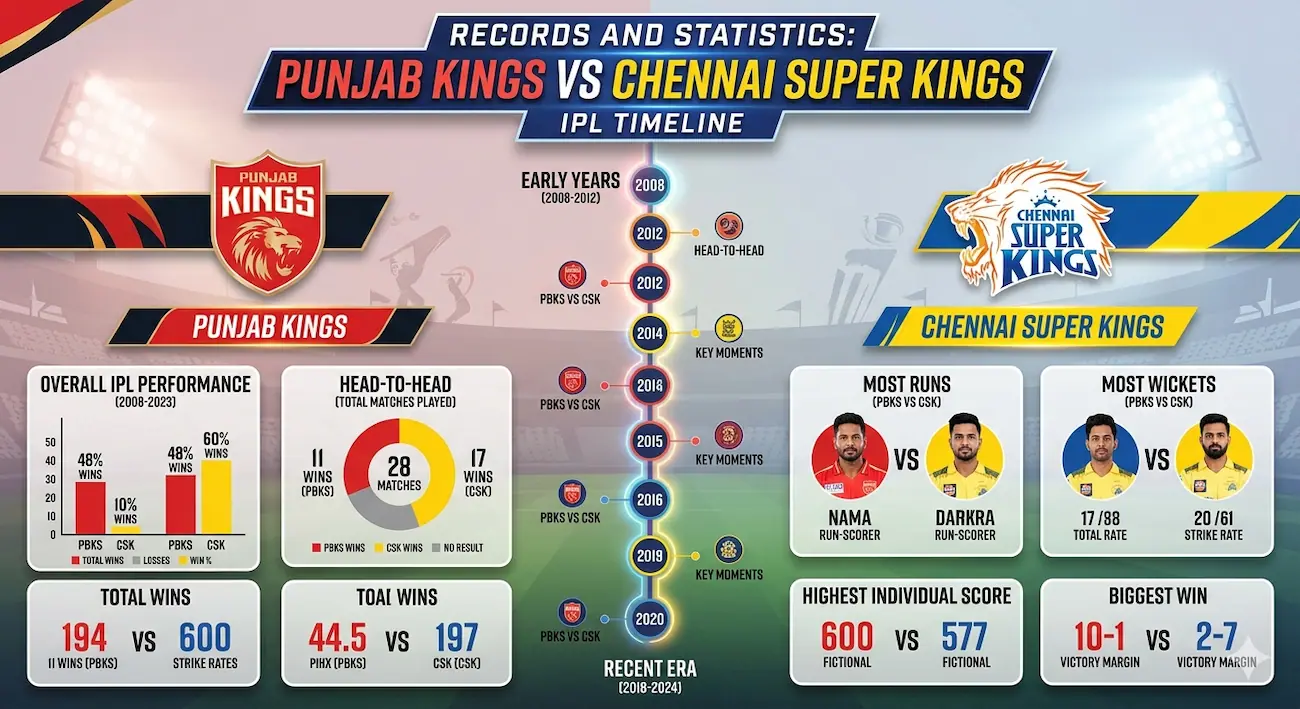 In simple words, the punjab kings vs chennai super kings timeline is a story of experience vs aggression, stability vs surprise, and consistency vs unpredictability.