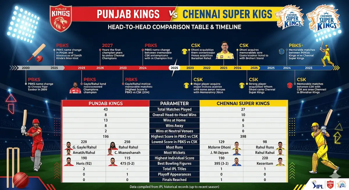 Punjab Kings vs Chennai Super Kings Timeline – Head-to-Head Comparison Table