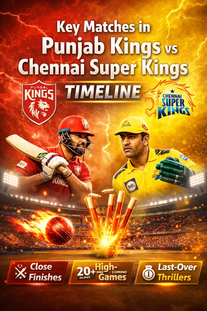 The punjab kings vs chennai super kings timeline captures a long-standing IPL rivalry marked by consistency from Chennai Super Kings and surprising performances from Punjab Kings. It includes match history, stats, and evolving team dynamics.