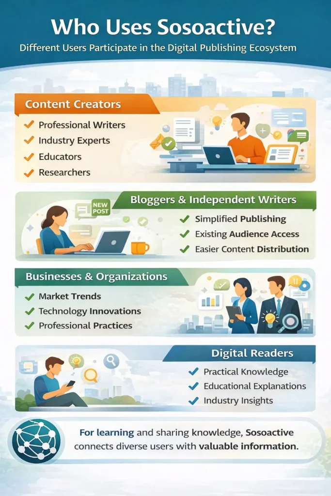 Sosoactive is widely described as a digital publishing environment where writers, bloggers, and organizations share informational content across multiple topics. Like other modern content ecosystems, the platform focuses on accessibility, audience engagement, and discoverability of articles across search engines and digital communities.